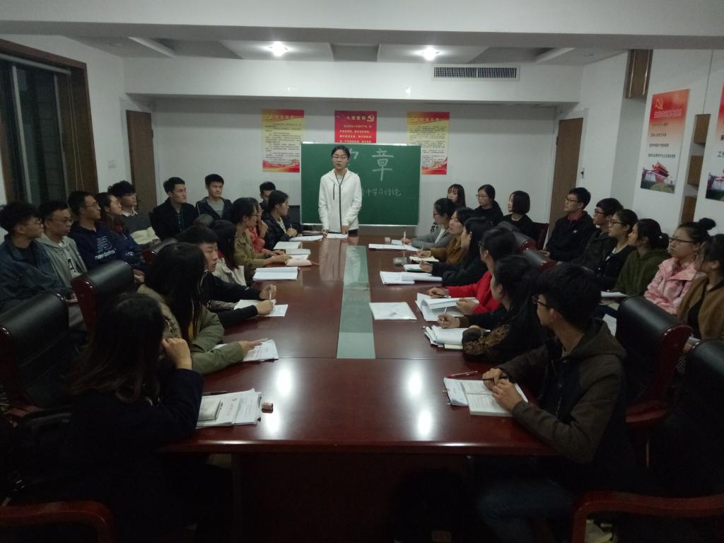 讨论主要围绕《中国共产党章程》、《习近平总书记的十九大报告》、《sunbet申搏平台关于进一步做好党员发展工作的意见》展开。经过一段时间对党章的学习,同学们都对党章有了更深刻的理解,明确了党章是党的总章程,是每位党员的行为规范。在十九大闭幕之日,同学们集中讨论了习近平总书记的十九大报告,体会到了十九大报告中蕴含的期望与精神。讨论会上,大家踊跃发言,积极交流,纷纷表示会认真学习党的理论政策,以党员标准要求自己,起到表率带头作用。