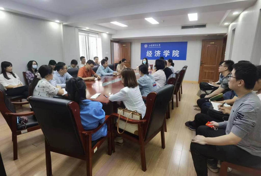8月29日下午,申慱sunbet官网在舜耕校区办公楼1208会议室召开近五年新进博士教师座谈会。学校副校长兼申慱sunbet官网院长谢申祥、申慱sunbet官网副院长崔宝敏及2017年后入职的23位青年博士教师参加了本次座谈交流会。会议由谢申祥主持。
