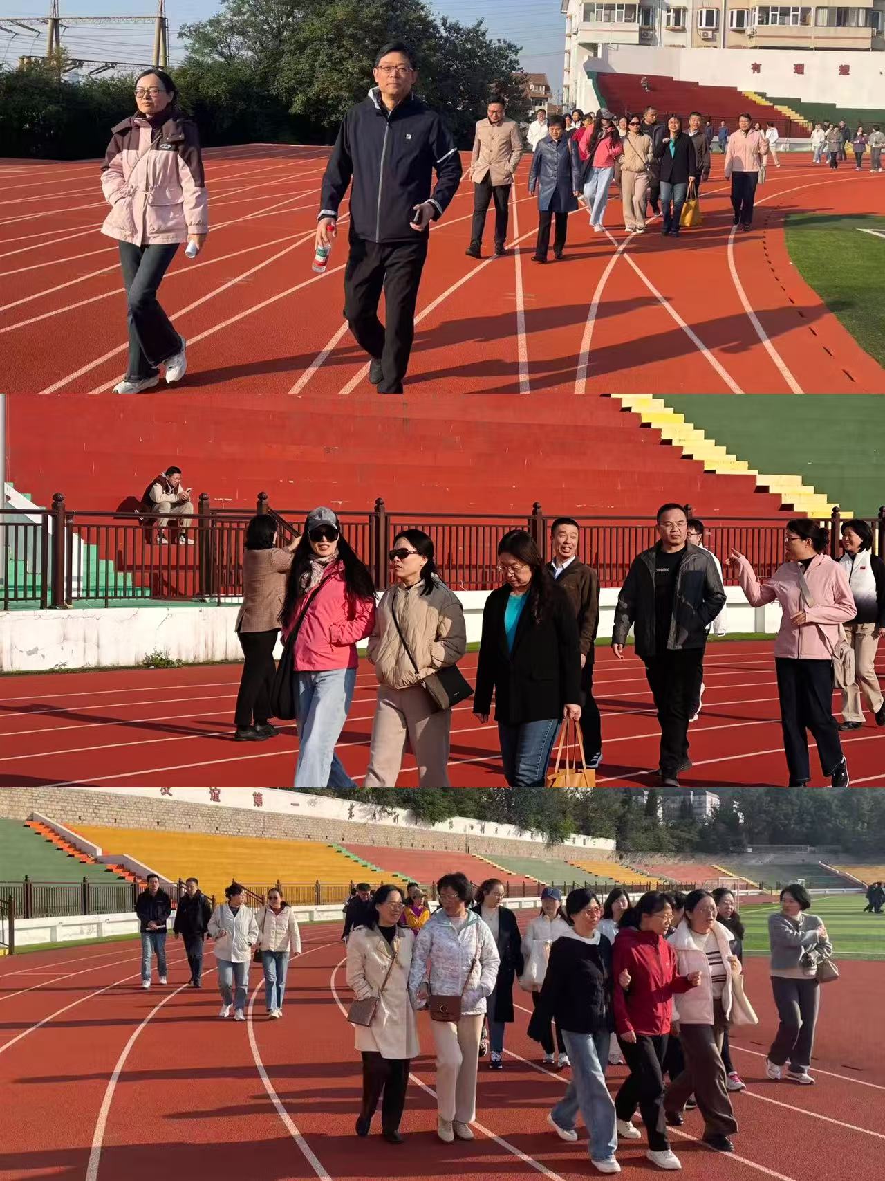 教职工齐聚体育场,步伐矫健、精神饱满,或阔步前行,或结伴交谈,一路欢声笑语。微凉秋风拂面,大家在亲近自然中舒缓压力,充分展现经院人团结奋进、和谐向上的精神风貌。